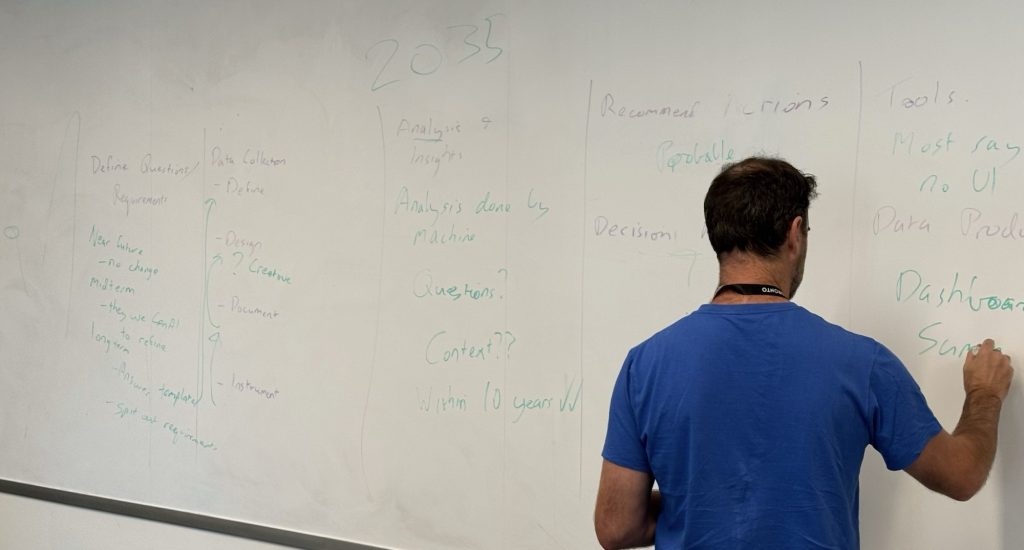 With last year’s experience under my belt, I didn’t feel stressed or nervous this time at all. Following the workbook how Peter ran his Digital Analytics 2035 session, I used the white board to organize my thoughts. There was some moments I feel like I was back on my student years standing on a classroom .