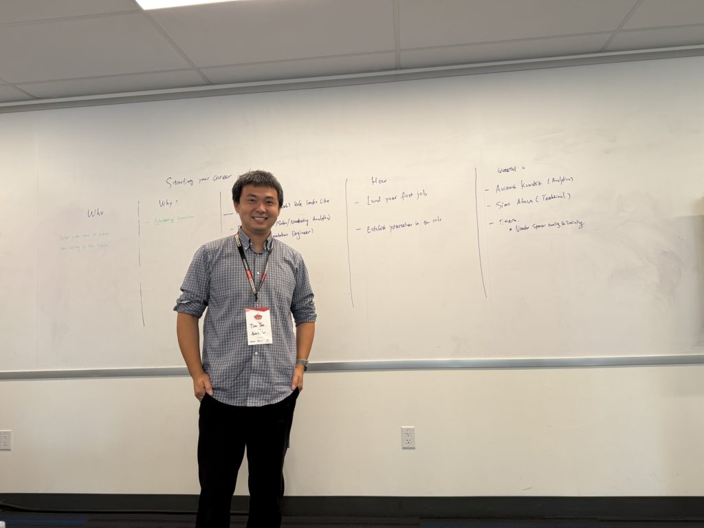 Coming up with a topic wasn’t that hard. Based on some early breakfast chat, I noticed there are a few students looking into break into this industry. So instead of answering each of their questions, hosting a discussion session would be a better use of my time. I spent a few minute writing a piece of session board, which become this following session.